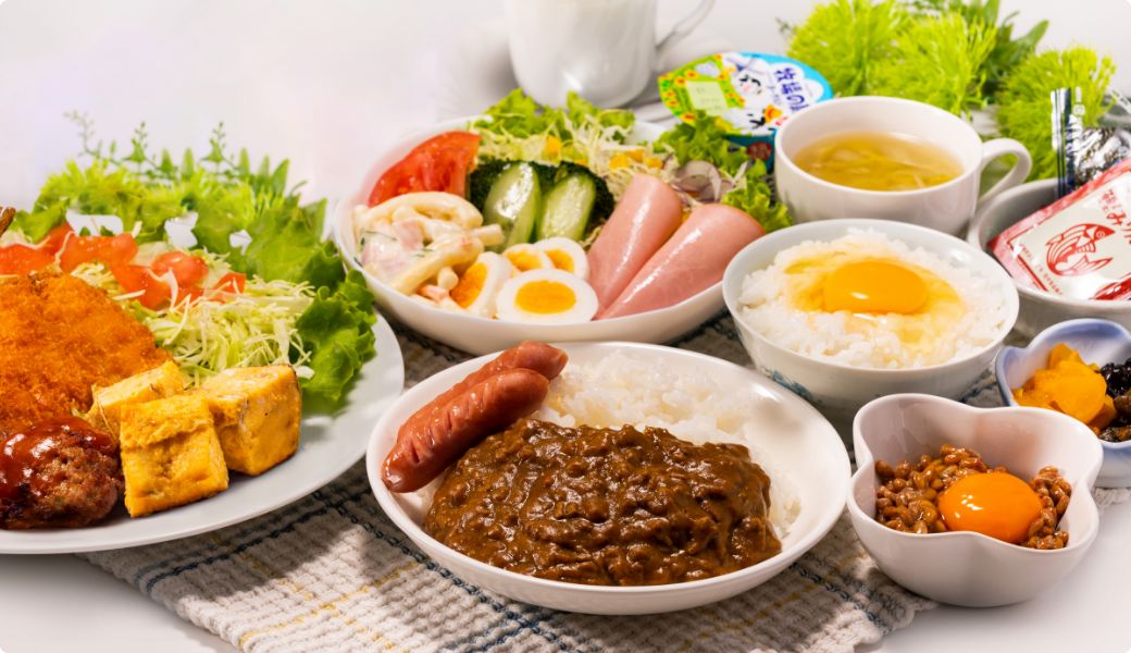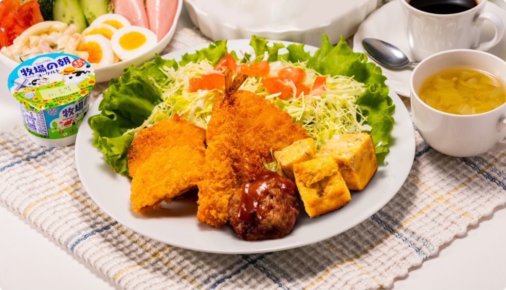 甲西アートホテルでは、一日を元気にお過ごしいただく為、サラダから煮物、揚げ物、卵料理やデザート等豊富なメニューをご用意しております。ビュッフェスタイルの朝食をレストランにてお召し上がりください。